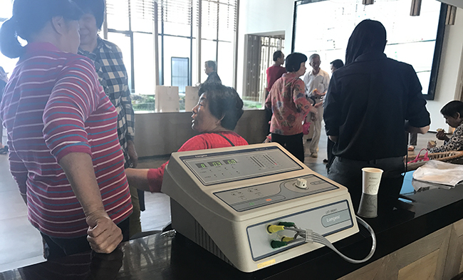 活動面向金山谷廣大業主開放,設置義診區和體驗區,義診區以中醫把脈問診為主,西醫康復護理咨詢為輔;體驗區設置了龍之杰康復醫療設備,供到場長者體驗。